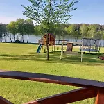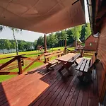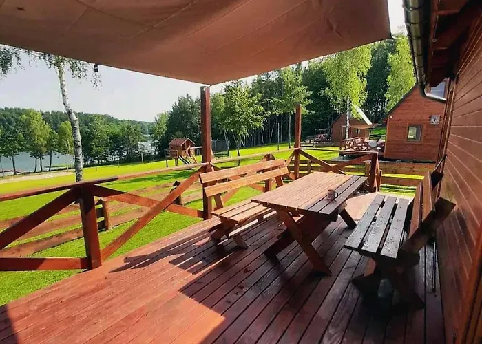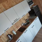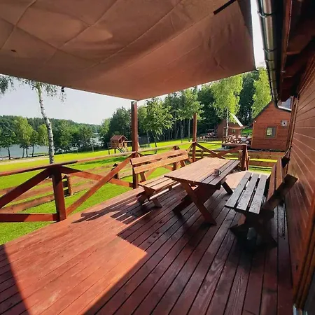 Os hóspedes podem cozinhar as suas próprias refeições na kitchenette na pousada Kaszubskie Domki Nad Jeziorem Bluj Glodowo.